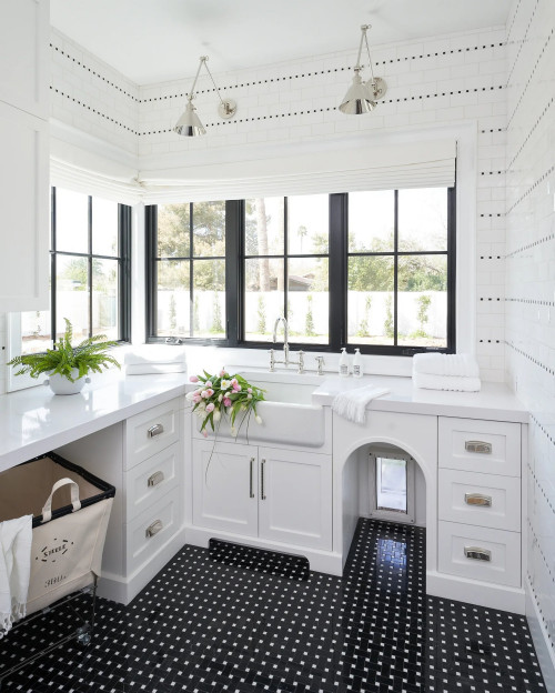Equipped with a handheld sprayer, tiled walls, built-in storage for shampoo and towels, and even drying hooks, these spaces make muddy paws, post-park rinses, or winter salt cleanup simple and stress-free. They’re also ideal for washing boots, garden tools, or other mess-prone items, making them one of the most versatile upgrades you can include.