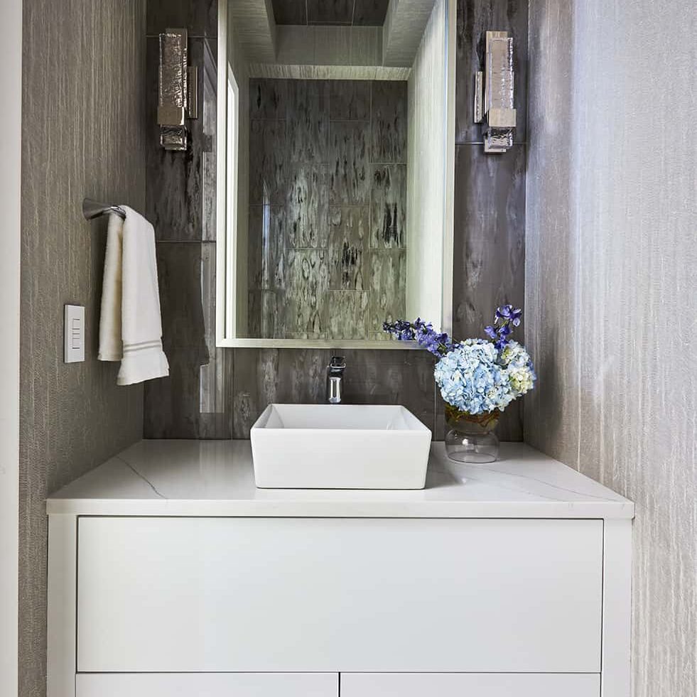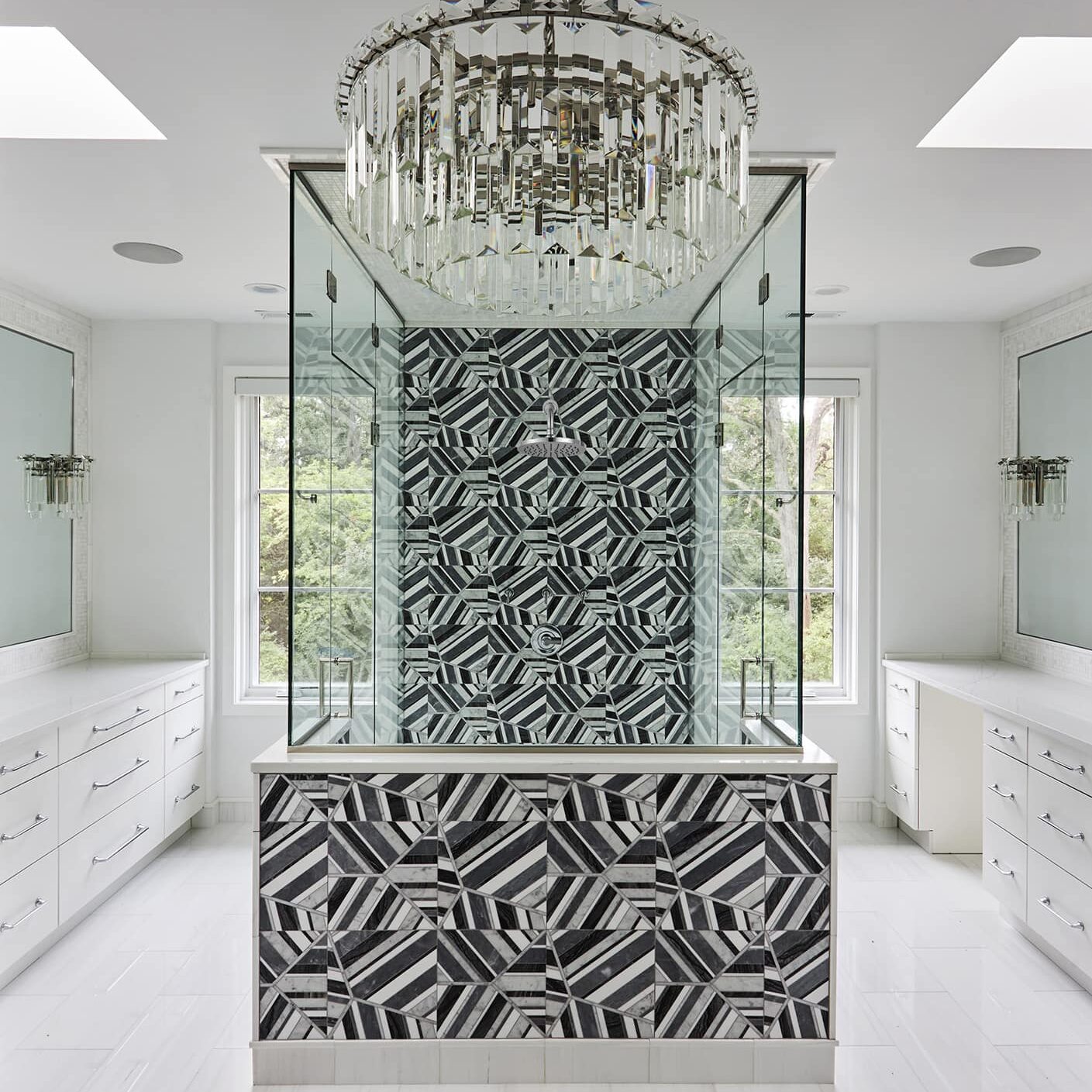- First floor tile is 32 x 32 Statuario Lux Polished Porcelain tile