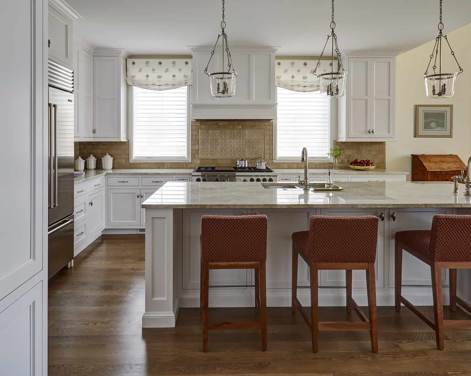 Trained as a chef and an avid cook, Myretta also put a lot of thought into the kitchen, incorporating all the bells and whistles in the open, airy space. She estimates that they spend about 90% of their time in the connected kitchen-family room, enjoying the sun from the southeast exposure.